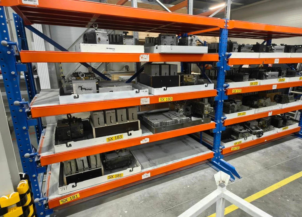 Металлические стеллажи с ящиками или контейнерами для склада или цеха используются для адресного и упорядоченного хранения как массивных инструментов, оснастки , так и мелких деталей. Могут быть разделены на ячейки с учётом веса и габаритов предметов.